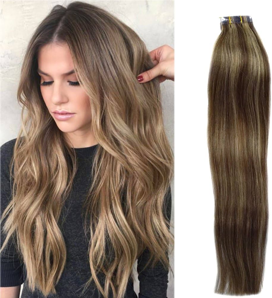 Tape In Hair Extensions Remy Human Hair Brown To Blonde Highlights 30grams 20pcs Seamless Skin Weft Blond Balayage Tape Hair Extensions 16 Buy Online At Best Price In Uae Amazon Ae
