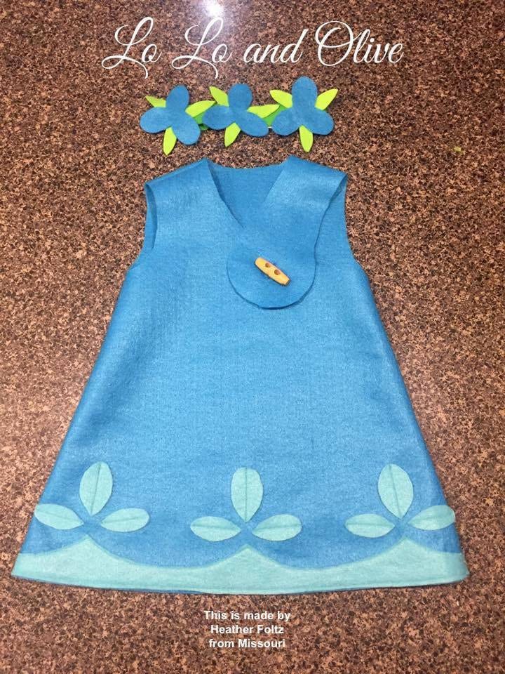 The little blue dress is easy to make from fleece or felt.